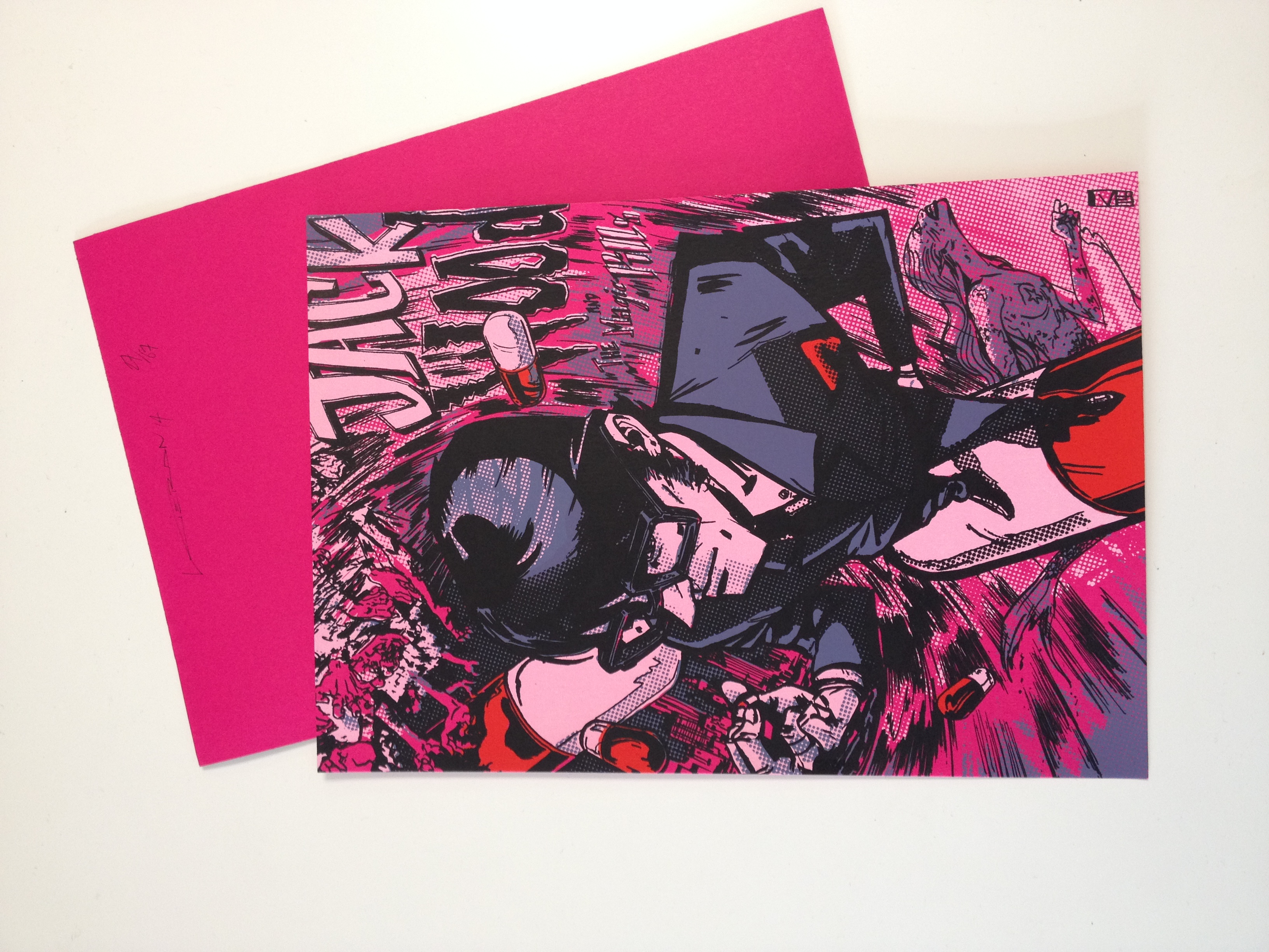 Sérigraphie 4 Couleurs (Blanc Noir Bleu Rouge) sur papier teinté (Rose)Nom d'utilisateur : Kieran