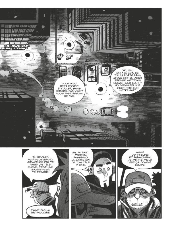 Avec Alva dans la nuit, ce récit, qui commençait à la manière d'un polar d'action et de suspense, va rapidement se transformer, prenant une tout autre tournure bien plus noire et fantastique. Le Scénariste Axel Stuttgart fait progressivement monter la tension en nous embarquant dans un récit intense, noir et riche en rebondissements. Ici, nous suivons la jeune orpheline en quête de réponse sur ses origines. Le récit est tendue, plein de suspense, où l'auteur distille les informations et les réponses à nos questions au compte-gouttes. C'est fluide, dynamique et le cocktail action/fantastique fonctionne à merveille. Il y a de nombreuses références à la culture populaire et le dessin en noir et blanc de Daniel Hansen fait la part belle au récit. Parvenant à créer un univers visuellement glaçant et très personnel. Le dessin est caricatural et singulier. C'est propre et très détaillé avec des contrastes superbement maîtrisés et des personnages très expressifs. Le seul petit bémol serait dans les découpages des scènes d'actions qui manquent parfois de clarté. Le résultat final est tout de même très réussi. Mettant en avant des thèmes telle que L'identité, la filiation, la recherche de ses origines, et la cupidité. Un thriller fantastique sur fond de mythologie nordique parfaitement maîtrisé qui questionne sans pour autant laisser le lecteur indifférent. Un récit atypique en one-shot de plus de 260 pages que je ne peux que vous conseiller de lire sans tarder.
