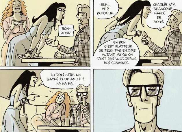que les deux héroïnes sont en totale opposition. A Mélina, qu’un raccourcis pourrait qualifier de nymphomane, vient s’opposer Charlie, jeune femme timide et fleur bleue. C’est après une exposition pour le moins explicite que l'intrigue se met réellement en place. Charlie ne donne plus signe de vie et après un appel de Mélina, elle avoue être tombée amoureuse. Si la première rencontre est glaciale entre la meilleure amie et le prince charmant, l'ambiance va se réchauffer lors d'un week-end en couple. C'est alors que Mélina va découvrir ce qui unit les jeunes amoureux. Et ce qu'elle découvre va la choquer car cette pratique, elle ne la comprend pas ! Mais lorsqu'elle apprend, par voie de presse, que le petit jeu a mal tourné, elle va reprendre contact avec Charlie. Autant par amitié que pour comprendre. Cela donne un album rythmé. Les scènes interdites au moins de 18 ans sont certes terriblement explicites mais elles ont le mérite d’être toujours bien intégrées. Les dialogues tranchent avec les standards cul-cul et stéréotypées de cet univers. C’est à la fois drôle et déstabilisant. D’autant que le trait percutant signé Grégory Mardon est lui aussi terriblement explicite. On comprend très bien pourquoi cet album est vendu sous blister ! Si les corps sont parfaitement représentés, les visages se déforment pour laisser trans