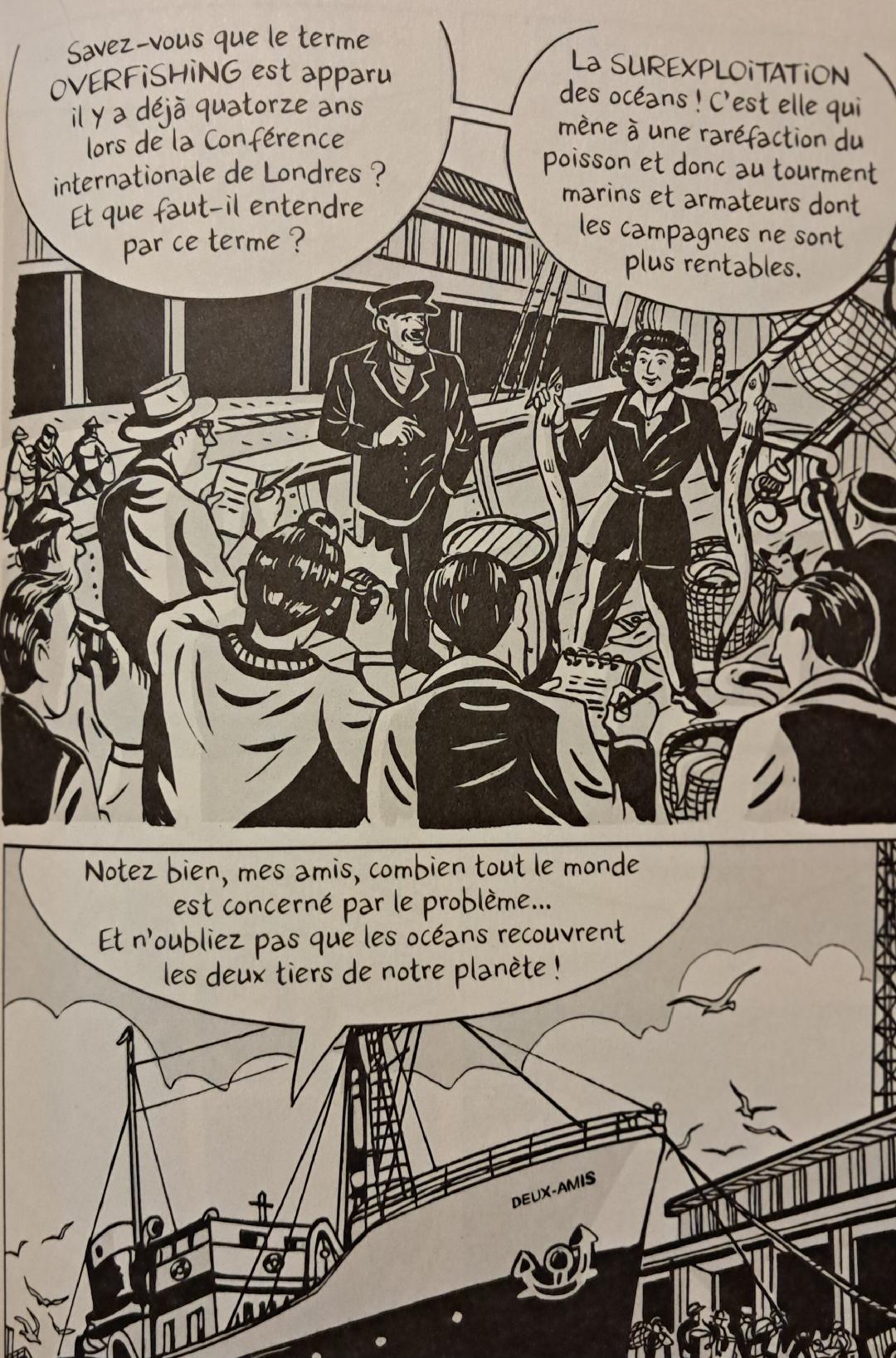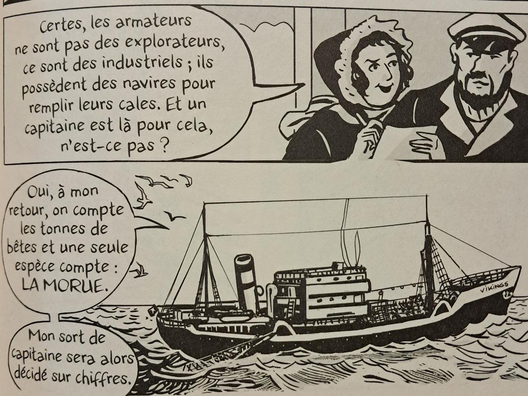 Les soubresauts historiques télescoperont également son parcours avec une Seconde Guerre mondiale qui la conduira à résister, et la poussera à trouver d’autres voies pour nourrir la population en cherchant du côté de l’Afrique pour dévier le blocage mené par les Nazis des ports métropolitains. Ses rencontres avec le pouvoir, des artistes comme Jean COCTEAU ou avec un autre passionné qu’elle par la mer, Jacques-Yves COUSTEAU, feront d’elle une spécialiste des océans et une précurseure de l’écologie regrettant le nombre de poissons pêchés pour rien. Ses différentes entreprises, elle les mènera avec passion jusqu’à s’oublier elle-même sans rien prévoir pour ses vieux jours. Ceux-ci lui offriront malgré tout encore des moments de bonheur avec celui qui deviendra son fils adoptif Laurent GIRAULT-CONTI et prendra soin d’elle et de sa mémoire.