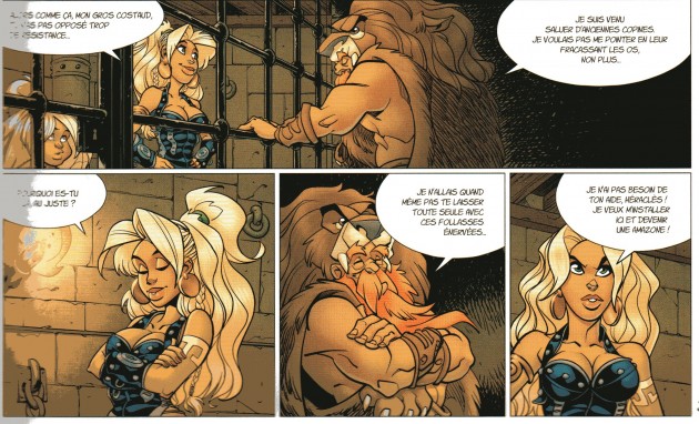 Album transitoire entre deux grandes aventures, ce dixième tome prend le temps d’exploiter le mythe des Amazones. C’est l’occasion, mine de rien, d’aborder un sujet d’actualité, l’égalité hommes-femmes, et de se demander si une société matriarcale est préférable à une société patriarcale. Cette réflexion générale s’accompagne d’une introspection de notre héroïne, en plein doute existentiel. Mais le tout reste plutôt léger et les présences de gros barbares sanguinaires, ainsi que de l’inénarrable Héraclès, font que l’action et l’amusement sont aussi au rendez-vous. Les superbes dessins de Grey, dans la continuité de ceux de Crisse, et les couleurs vives de Besson achèvent de rendre cette lecture des plus agréables.