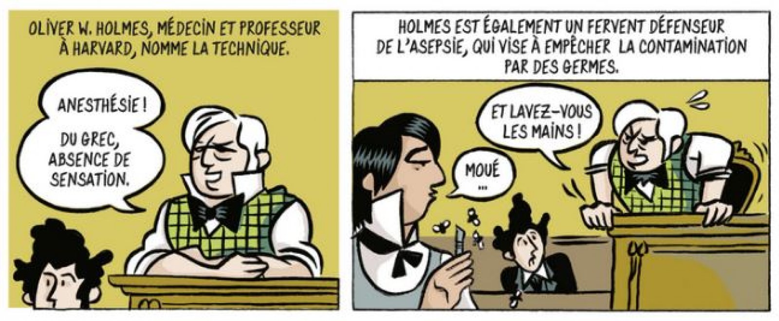 Cette BD est divisée en 4 chapitres qui permettent aux lecteurs d’en apprendre plus sur certaines avancées médicales. Ainsi, dans le premier chapitre, « Heureux hasard » on découvre comment Horace Wells, un dentiste, teste l'anesthésie sur lui-même mais également comment il en paiera les conséquences... On y découvre également l’existence de « Mary typhoïde », une cuisinière, première porteuse saine connue, qui a contaminé des dizaines de familles américaines en étant leur cuisinière et en ne se lavant pas assez les mains...