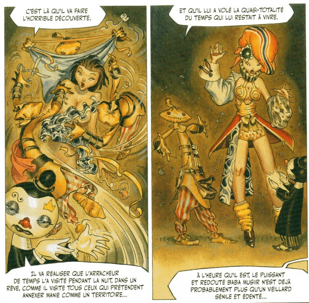 Capturée par le grand mamamouchi Baba Musiir et retenue captive dans son palais, Manie Ganza sait que ce nouveau mariage a peu de chance d’aboutir. Trop de personnes sont à ses trousses : l’Arracheur du temps bien sûr, le poète Eugène aussi, fou amoureux de la belle et aidé par la major, sans oublier la reine Ether, capable de tout pour se venger de sa fille, y compris à réveiller des forces indicibles.