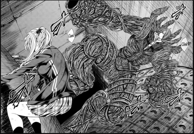 La confrontation entre Kirisaki et Kowloon est sur le point de commencer. Pendant ce temps, Yuri se trouve face à Amana, une adversaire encore assez mystérieuse qui semble dissimuler de sombres secrets. Le combat entre ces deux femmes est empreint de mystère et d’émotion. Les lecteurs découvrent peu à peu l’histoire d’Amana et ses motivations, créant une ambiance chargée d’émotions. Yuri, avec sa détermination et son pouvoir unique, devra faire face à de profondes réflexions morales en dissipant les doutes qu’Amana a installés en elle au sujet des motivations d’Akira et de son père.