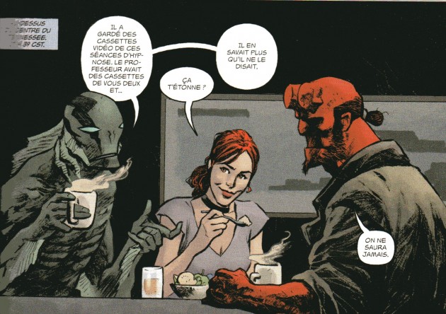 Abe Sapiens, Hellboy en Enfer et Witchfinder (et peut-être d’autres que je n’ai pas lu). Ceci étant dit, même si vous avez des trous dans vos lectures, cet album n’est pas un mauvais point de départ pour vous y remettre : une seule série, une nouvelle menace, tous les personnages emblématiques… Faut juste accepter de ne pas comprendre toutes les références ou les motivations de certains personnages.