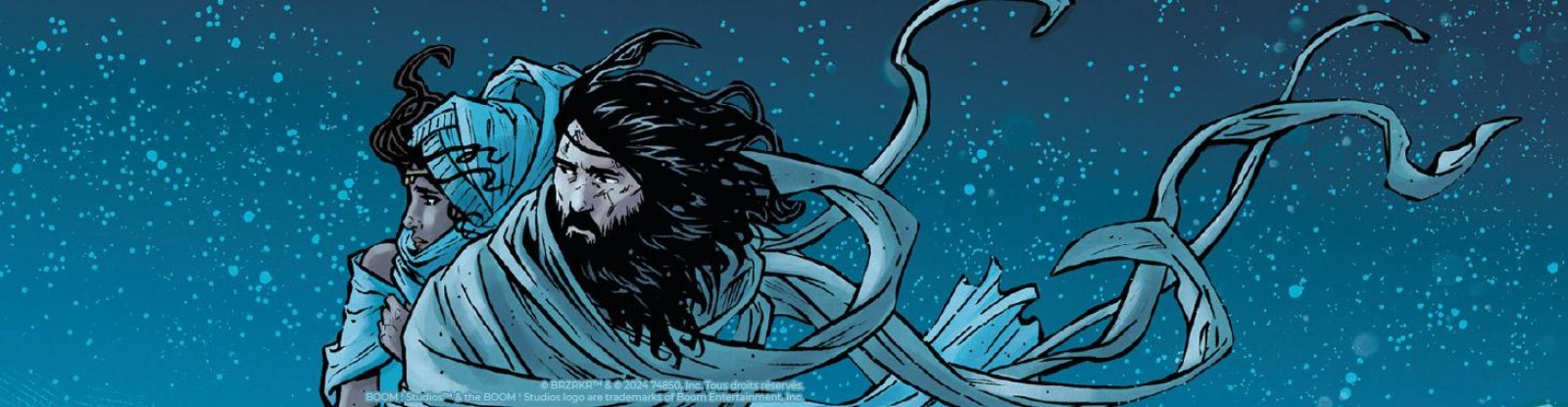 Dans la continuité de la trilogie BRZRKR, les auteurs de la série mère dont Keanu Reeves ont ouvert la porte à des one-shots dans l’univers de ce personnage immortel de B. C’est ainsi que dans ce volet on se retrouve avec deux histoires dans des lieux et des temps totalement différents. A titre personnel, j’ai trouvé un certain intérêt dans l’histoire Empire déchu, scénarisée par Tomlin et dessinée par Isaacs. Dans cette histoire, il n’y a pas que de la violence sans intérêt, le personnage a un côté plus humain car il tente de maîtriser sa colère, il parcourt de la distance pour éviter de faire du mal à la reine, il y a de l’amour, de la trahison, une fin, une vraie histoire qui tient la route dans le contexte que l’on connaît. A l’opposé de l’histoire « la poésie de l’insensée » où la violence prend trop le pas sur le récit au point de le rendre sans intérêt.