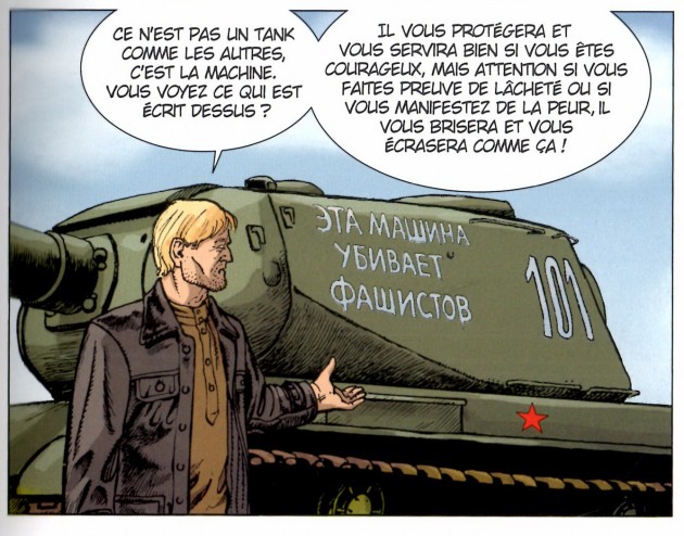 Jean Pierre Pécau aime jouer avec l’histoire («Jour J» – «L’histoire secrète» – «L’homme de l’année») mais il aime également jouer avec ses personnages et leur participation à l’Histoire. Peut-être est-ce du à son passé? Il a travaillé pour la société Donjons et Dragons, où dans le jeu de rôle, chaque joueur est maître de son destin et de ses choix. Ici le héros n’est pas être de chair et de sang mais une machine, un char.