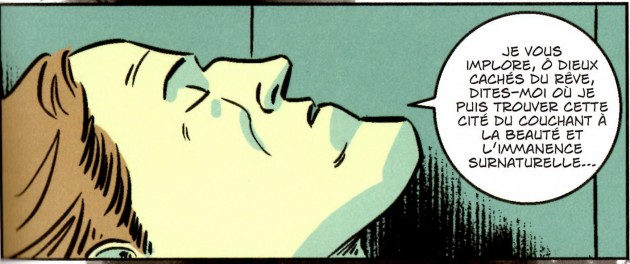 Par son style et un découpage très dynamique, Ian Culbard donne vie à Randolph Carter et sa quête, enchainant les étapes une à une au gré de ses rencontres, mais ceci sans longueur, nous permettant d’oublier que nous sommes dans un rêve et non dans la réalité.