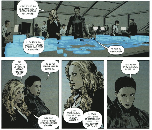 Et de l'espoir, il y en a vraiment peu dans ce monde, les personnages subissent cette société terriblement injuste sans pouvoir rien y faire et ceux qui osent se rebeller sont des terroristes avec lesquels on ne peut guère avoir d'empathie. On peut bien se douter que Forever, l'héroïne principale, la seule sans doute à avoir assez de pouvoir pour changer les choses, va progressivement prendre conscience que le monde ne peut pas continuer comme ça. Mais si elle commence à s'interroger sur ses origines, elle ne remet pas encore en question la volonté de la famille. Il en résulte qu'on se trouve confronter à deux catégories de personnages : ceux pouvant agir mais ne le voulant pas, et ceux qui aimeraient améliorer les choses mais qui sont totalement impuissants. Pas très joyeux tout ça.