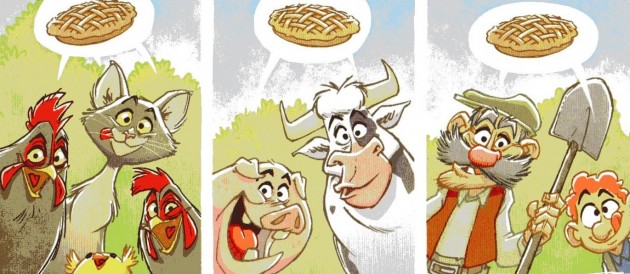 A l'heure du goûter, toute la ferme se retrouve sous les fenêtres de Mami Moune: tous rêvent d'une tarte aux pommes. Mais non! Mamie Moune prépare ses célèbres biscuits en pain d'épice. Et pour cela, elle a besoin de concentration!