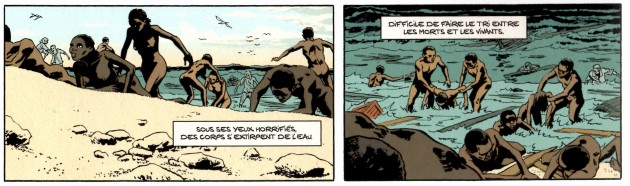 Au fil des pages, l’auteur nous fait rentrer petit à petit dans le cœur et la peau de ces esclaves pour leur faire jouer le premier rôle. Du statut d’esclave apeuré dans les cales du bateau, puis en « amis » des blancs qui vont les aider à construire l’embarcation qui pourrait les sauver, pour finir en naufragés du bout du monde, laissant le rôle des blancs à de simples dialogues incompréhensibles.