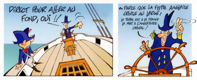 Et bien, Dirick l’a fait ! Le dessin caricatural et vif renforce le réel travail de recherches préliminaires. Les allusions à la franc-maçonnerie et à d’autres religions sont légions, tout en restant subtiles. L’humour décalé est très efficace, surtout lorsqu’il fait référence à notre époque. Comment ne pas sourire lorsque Napoléon harangue les « technoploucs (nouvelle race de fainéants, d’après Coluche) qui donnent des notes : « AH AH AH plus ou AH AH AH moins ! » et qui veulent interdire le fromage de brebis corse ! On peut cependant regretter que cet humour bon enfant flirte parfois avec le populisme.