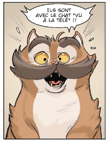 On aimera les moments de l’album où la fine équipe déambule dans la capitale, (cela donnerait presque envie de retourner s’y balader), ainsi que de jolis mouvements des héros félins de cet album. On regrettera cependant un découpage qui ne rend pas la lecture toujours naturelle et particulièrement des bulles qui donnent l’impression de ne pas toujours être adaptées au texte, ainsi que quelques erreurs de placements (à mon goût)…. Mais les personnages sont tellement attachants qu’on pardonne vite en passant à la suite des pages pour connaitre la fin de l’intrigue.