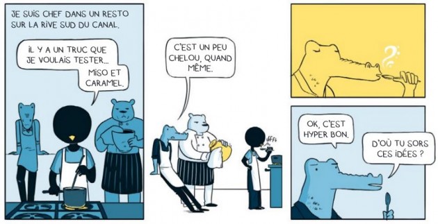 Le dessin est également vraiment plaisant avec un style simple mais bigrement efficace notamment avec tout un travail sur les nuances de bleus et de jaunes.