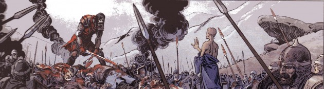 Le dessin quant à lui est tout-à-fait plaisant, avec une mention spéciale pour les personnages, expressifs et charismatiques. Etienne Le Roux composent aussi quelques magnifiques cases de bataille de masse, qui si elles ne sont pas nombreuses, sont des plus réussies.