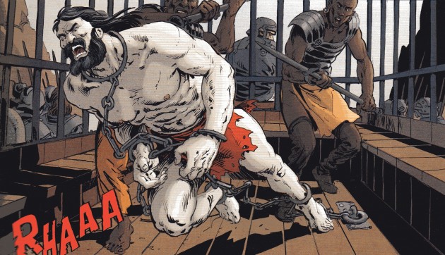 La période où Conan règne sur l’Aquilonie est sans doute la moins exploitée de la très prolifique carrière du Cimmérien. C’est pour cela qu’elle est intéressante, sans compter qu’elle nous présente un Conan plus sage, portant le poids de ses responsabilités, et devant faire face à des problèmes politiques qu’un bon coup d’épée ne saurait régler. Cela change de l’image traditionnelle du barbare. Cependant, Conan n’a guère l’occasion de montrer ses capacités à régner puisqu’en trois pages, il est fait prisonnier et devra faire jouer ses muscles plus que sa cervelle pour se tirer d’affaire. L’intérêt de l’histoire n’est donc pas tellement dans la politique gouvernementale de Conan, mais dans un savant mélange alliant inspiration historique (la guerre des barons de l’Angleterre du XIIIe siècle) et sorcellerie. On y voit bien d’ailleurs la place ambivalente de la magie dans le monde de Conan, rarement présentée de façon positive, elle n’est pas toujours mauvaise pour autant et Conan, qui n’a que du mépris pour elle, peut s’en accommoder pour un temps.