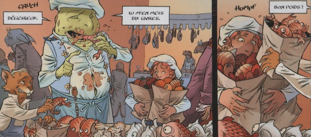 Olivier Boiscommun est assez surprenant dans ce premier volet, dans un registre et surtout dans un style graphique très très différents du « Règne » ou encore « La cité de l’arche ». Je n’aurais pas reconnu son trait au premier coup d’œil mais le résultat est encourageant, différent mais réussi, avec un point supplémentaire pour toutes ces créatures sorties de l’imaginaire des auteurs.