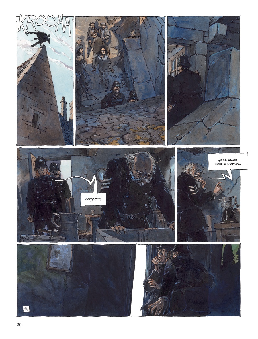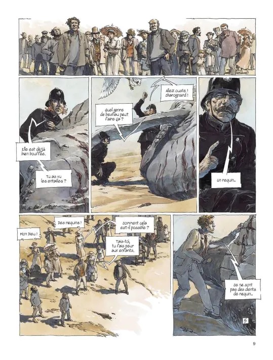 Pour relever ce défi, l’auteur impose dès les premières planches une angoisse diffuse, à la fois au lecteur et à son personnage principal, Gwilym. Il installe progressivement la peur, resserrant l’étau autour de ses protagonistes. Puis il joue sur le rythme de lecture, le placement précis des dialogues, des cases et des effets visuels. Parfois, il laisse croire qu’il n’y a rien d’inquiétant — une scène paisible dans un champ de blé, des papillons, une plage tranquille — avant qu’une diablerie, un corbeau, ne vienne rompre l’apaisement et ramener la terreur.