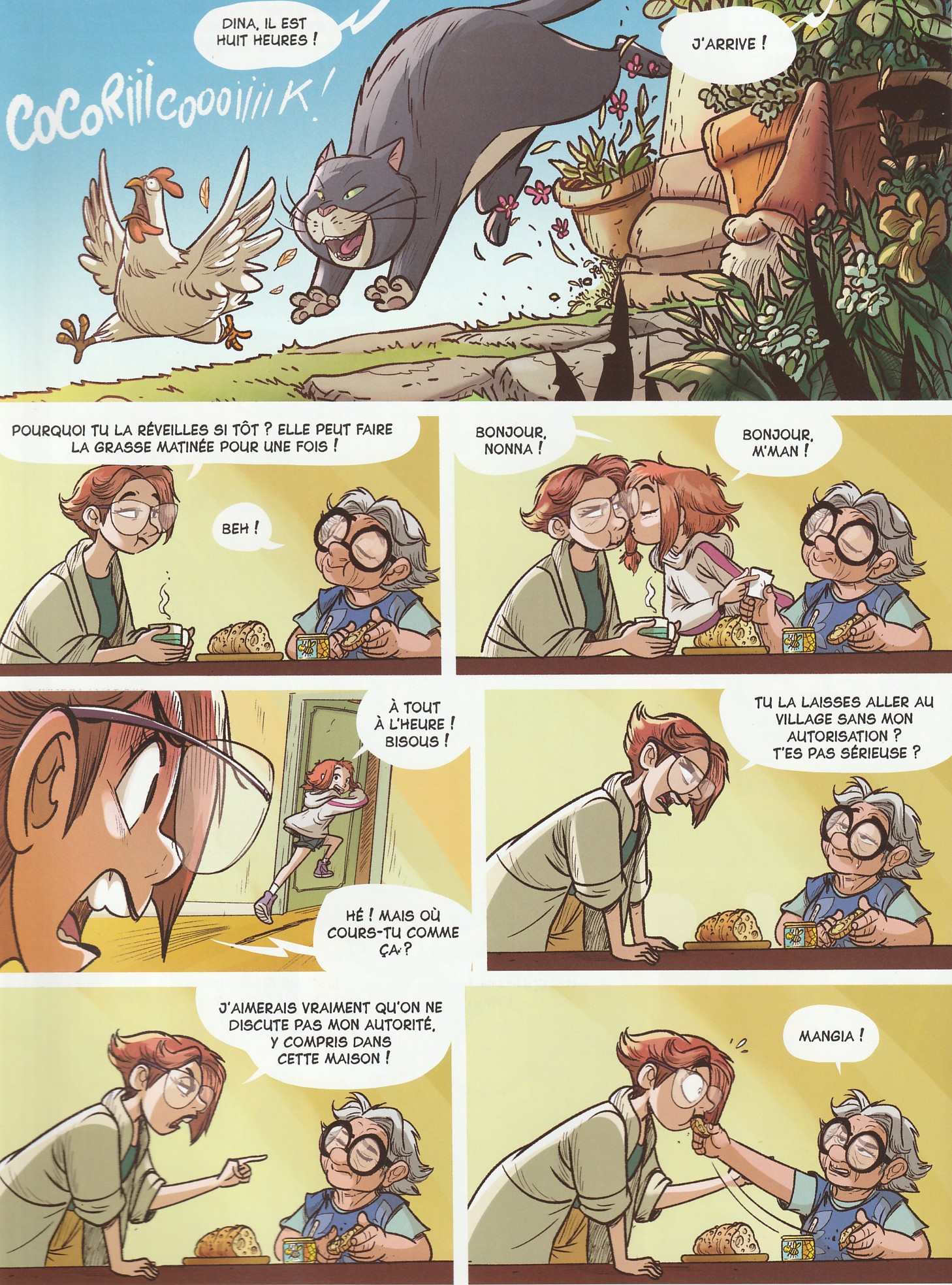 Il est évident que cet album s’inscrit dans une filiation bien connue, d’Arthur et les Minimoys au récent L’Homme qui rétrécit, en passant par Chérie, j’ai rétréci les gosses. Pour autant, Stéphane Lapuss insère de nombreux ingrédients sociaux dans son intrigue fantastique. Ainsi, l’album s’ouvre sur le trajet de vacances d’une famille monoparentale, et la jeune fille reproche à sa mère son manque de disponibilité, elle qui travaille pour deux afin que sa fille ne manque de rien. Une situation explosive qui parlera à beaucoup. L’arbitre de cette lutte sera la grand-mère. Pourtant, elle aussi possède un lourd passif, qu’elle va raconter dans un flash-back aussi instructif qu’émouvant. Néanmoins, il s'agit d'un grand-mère et comme toutes les grands-mères, elle sait se montrer drole et attentionnée. Une fois rapetissée, Dina va devoir appréhender le monde de l’infiniment petit. Mais le scénariste introduit alors des questions de démocratie et de bien-être collectif. Parfaitement intégrée, cette réflexion permettra aux jeunes lecteurs de se familiariser avec des problématiques politiques au cœur des débats actuels. Pour autant, l’album reste avant tout une aventure, et celle-ci est parfaitement maîtrisée. Devenue minuscule, Dina se rend compte que la vie miniature n’est pas de tout repos et qu’il n’y a pas que les araignées dont il faut se méfier. Les dernières péripéties introduisent d’ailleurs avec brio le prochain opus, qui s’annonce d’ores et déjà explosif. Côté dessin, Antonello Dalena est bien dans l’air du temps : les personnages forment un mélange abouti et savoureux de bande dessinée franco-belge, de manga et de Dolce Vita. Le petit village est un pur régal pour les yeux et la mise en page, à la fois classique et très dynamique, fonctionne parfaitement. À cela s’ajoute la colorisation vive de Cécilia Guimento, qui parvient à créer des atmosphères variées selon la narration et les lieux visités par la jeune héroïne.