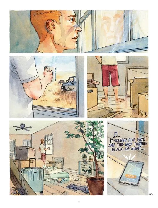 A la lecture des premières planches, l’atmosphère s’impose, le lecteur est transporté, loin des grandes villes, loin de la technologie dans un monde où le temps semble s’être arrêté. Pour Tom, c’est un choix que de se retrouver dans cette ville du Wyoming pour échapper à son passé et à une relation amoureuse difficile. Pour les habitants au contraire, ces paysages désertiques, cette poussière, la peur de l’autre représentent leur quotidien, une sorte de Far West qui n’a pas évolué.