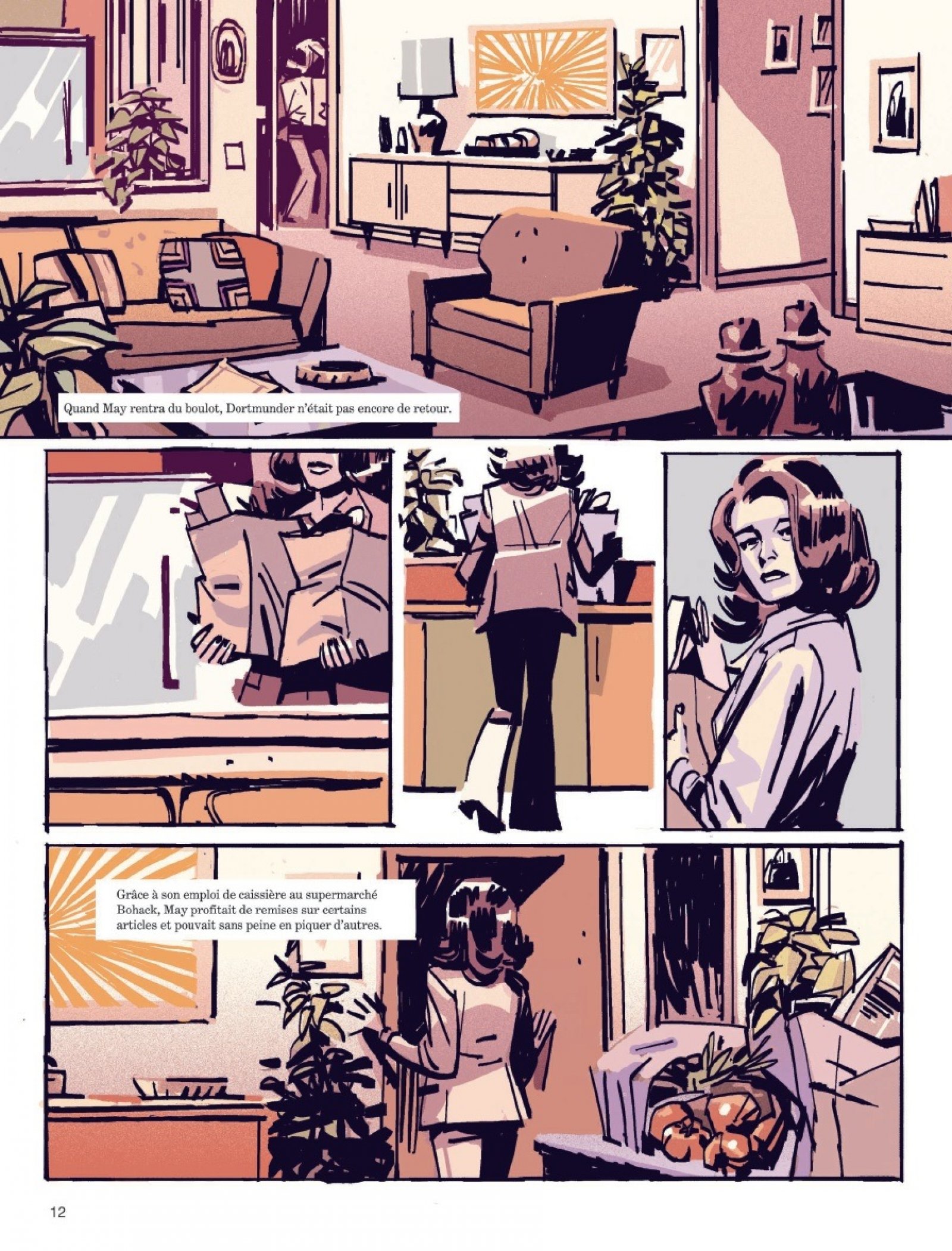 Pour renforcer cette ambiance de polar à l’ancienne, le dessinateur espagnol Jesús Alonso Iglesias adopte un style pop vintage inspiré des années 70, comme sorti d’un autre temps. Un choix esthétique en parfaite adéquation avec le ton décalé de l’histoire et de ses personnages.