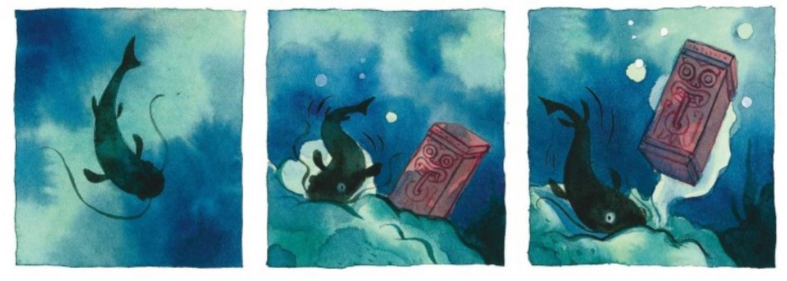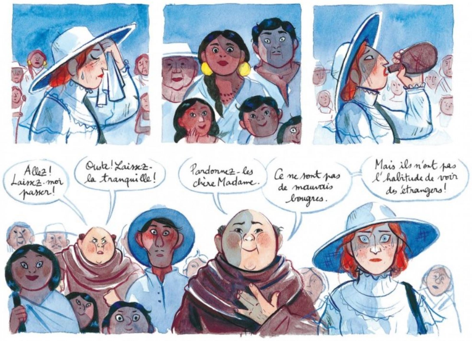 Et cela tombe bien car dès les premières pages, le dessin somptueux de Karine Bernadou nous donne l’envie de découvrir lentement chaque détail. Son trait, délicat et expressif, donne vie à une nature luxuriante et menaçante. Les planches réalisées en aquarelle sont tout simplement magnifiques (notamment les doubles pages en fin d’album).