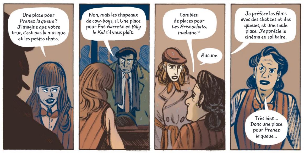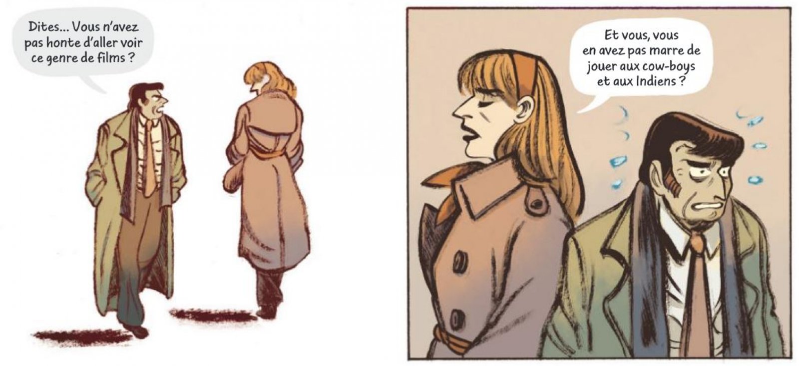 Eliot, au dessin, et Kathrine Avraam, à la couleur, nous plongent dans la France des seventies. Ils captent à merveille les décors urbains, les plateaux de tournage enfumés et les vieux cinémas de quartier.