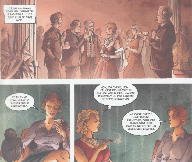une affaire en or : épouser un riche héritier qui s’ignore et toucher le pactole ! Va-t-elle réussir ? Ne risque elle pas de se brûler les ailes? Le timing sera-t- il respecté et le pigeon ne va-t-il pas se réveiller avant les noces ? Autant de questions, autant de péripéties. Côté dessin, Luc Brahy met l’élégance de son trait au service de cette mondaine. Les intérieurs respirent l’opulence et l’oisiveté. Les personnages ne manquent pas de charme et les caractères sont tout à fait perceptibles. La mise en scène et les angles de vue restent assez simples mais en totale adéquation avec le style théâtral. Les conversations s’effectuent de manière linéaire, le plus souvent sur un plan unique. L’ensemble reste toutefois assez dynamique et agréable à lire.