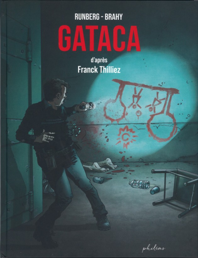 Intéressons-nous maintenant à « Gataca ». Pas besoin d’avoir lu « le syndrome [E] » pour se plonger dans la lecture et comprendre l’histoire. Dès la première planche, le ton est donné et on peut se douter que cela va être sanglant et violent. Et pour cause, Sylvain Runberg va faire ressortir dans cette adaptation toute la dureté du roman. Il va construire le récit tout doucement mais avec fermeté, livrant au lecteur des indices petit à petit pour les amener à comprendre comment des meurtriers gauchers viennent à se suicider quelque temps après avoir réalisé leurs méfaits. La clef viendrait peut-être de la nuit des temps et serait apparue chez nos ancêtres les Cro-Magnon. Le suspense est à son comble et impossible de lâcher cette enquête.