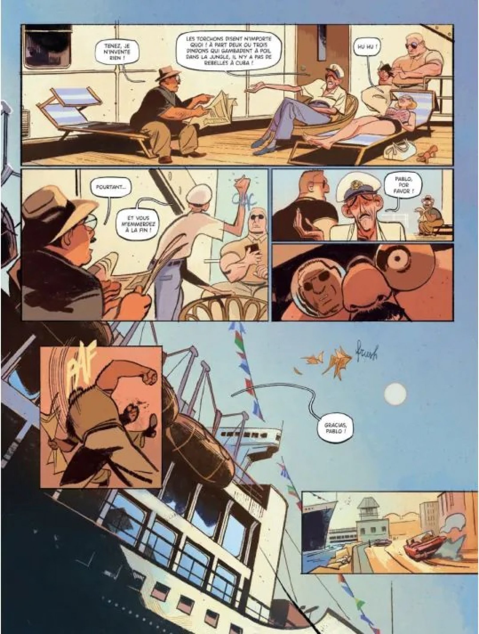 Vous l’aurez compris, ce premier volet de Havana Split prend le temps de s’installer, de présenter les personnages, la situation géo-politique et le contexte social de l’île. Cela n’a rien de désagréable que de lire cette carte postale à la fois pédagogique et récréative par un dessin et un humour bien placés. Puis la deuxième partie arrive et tout va s’accélérer, le père de Lily va se retrouver en mauvaise posture et séquestré par la mafia de Don Alfonso, et pour le libérer, Lily et ses camarades de jeu vont devoir remplir une drôle de mission.