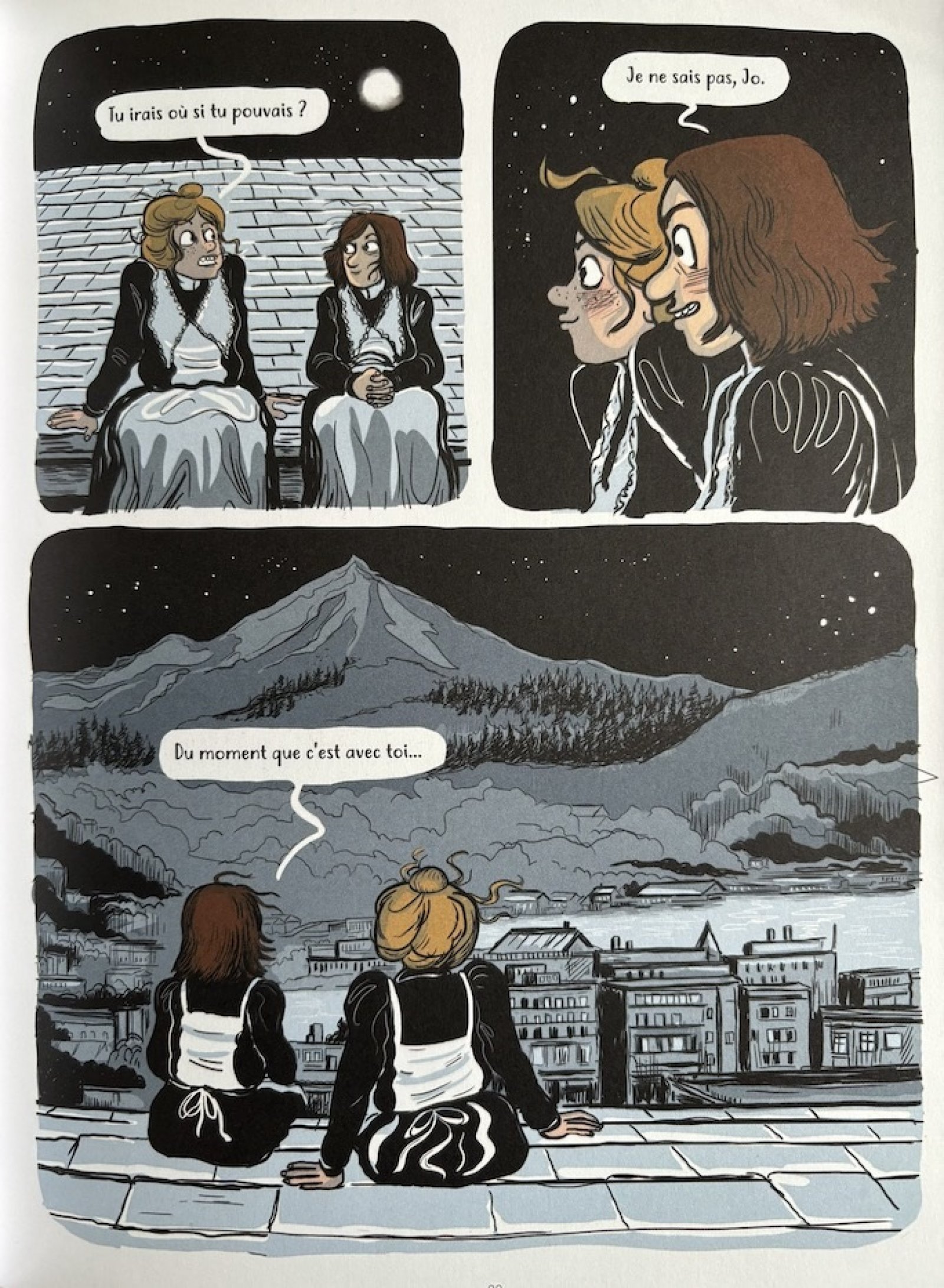 Pour illustrer cette histoire, Priscilla Horviller va pratiquer un découpage de 4-6 cases par planche avec un dessin semi réaliste et très expressif en variant les couleurs selon les époques.
