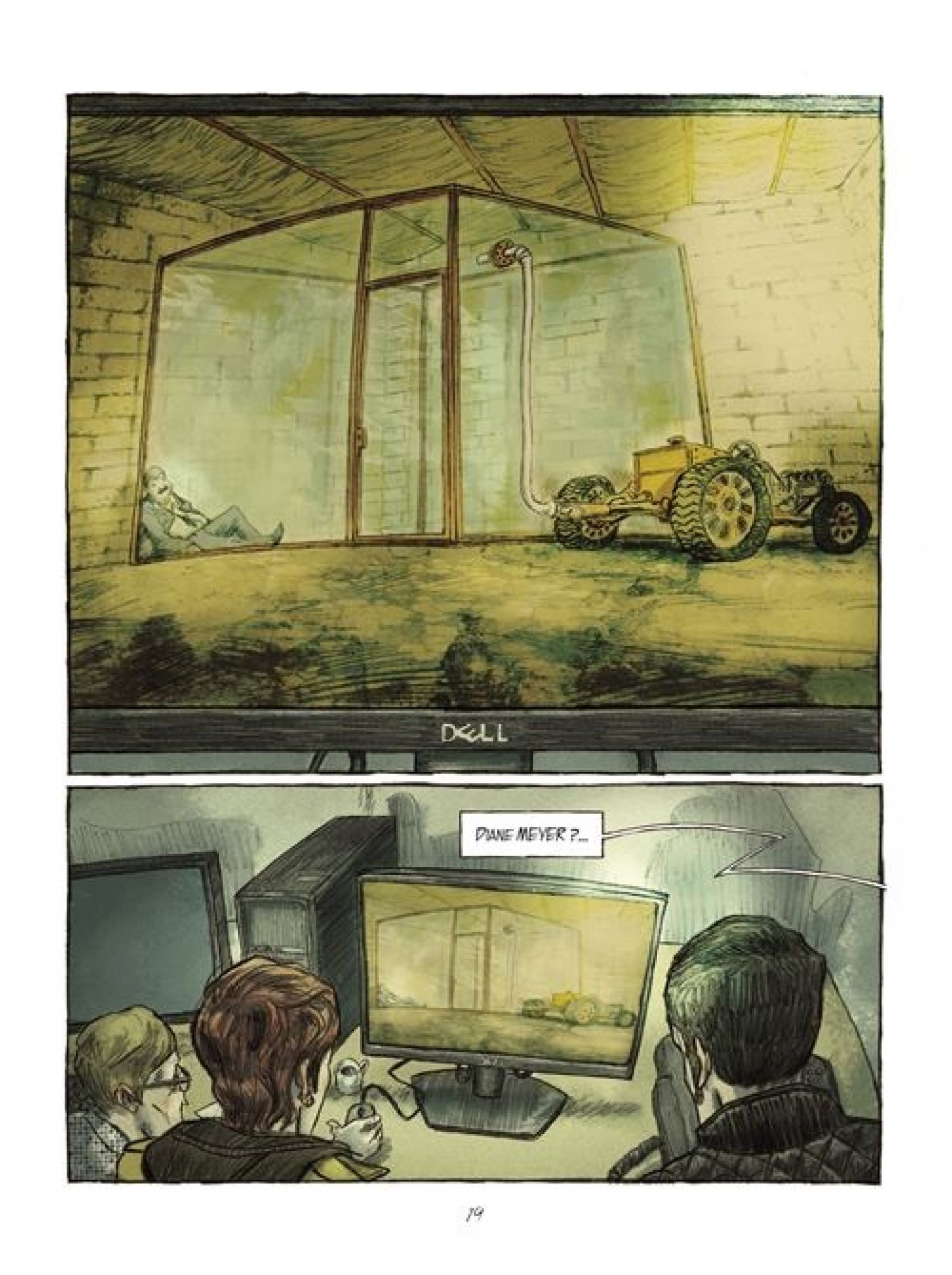 Un récit habilement mené et bien scénarisé, entrecoupé de scènes extérieures à l’action principale pour montrer les conséquences dramatiques des désastres écologiques, le tout illustré par l’auteur strasbourgeois Frédéric Pontarolo, édité par Michel Lafon depuis 2020, et auteur également d’une belle adaptation de « l’homme invisible » dont le style assez brut et les couleurs chaudes renforcent le côté oppressant de la situation.