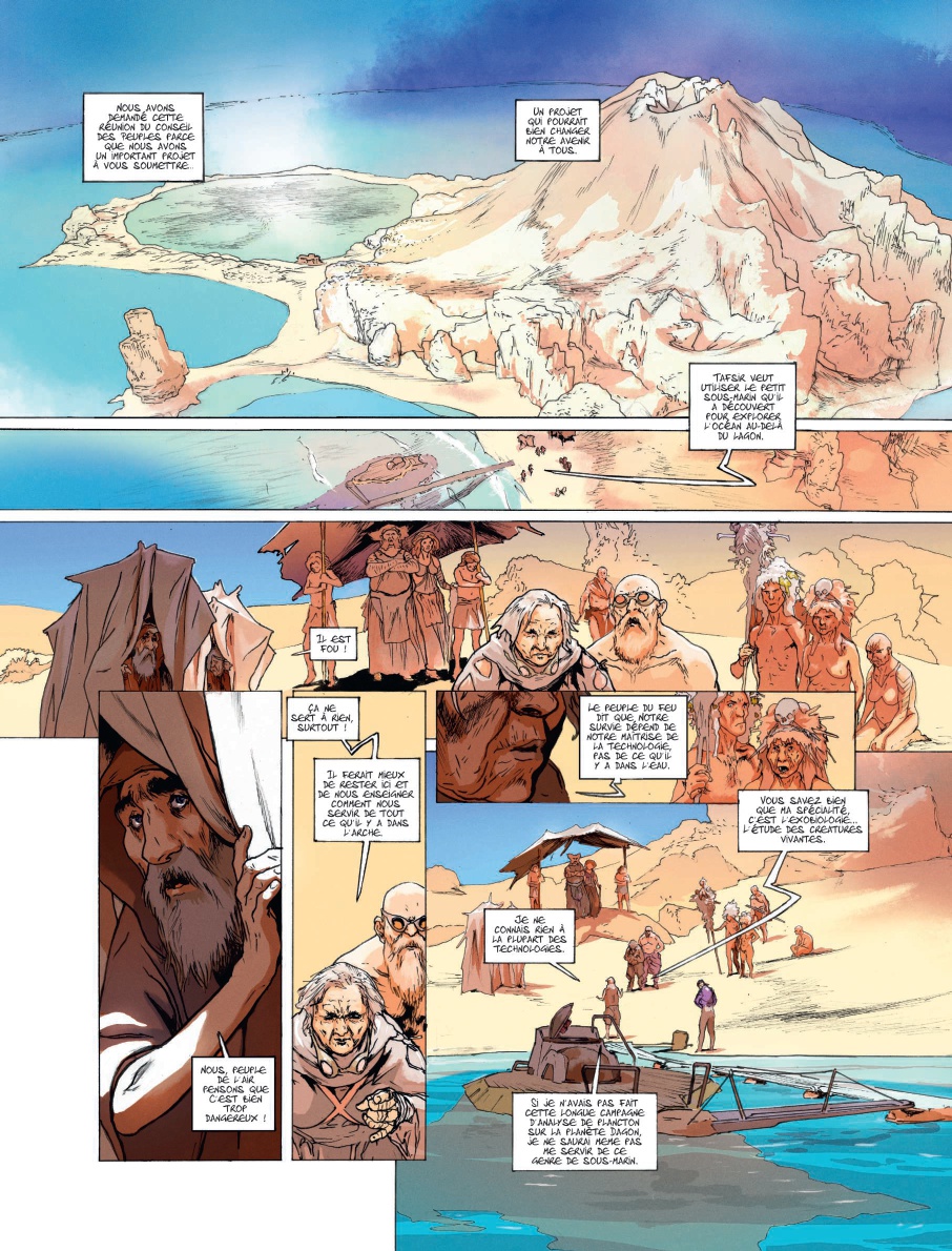 Depuis le départ du Grand-Tout et de ses protecteurs, plusieurs années se sont écoulées et les habitants livrés à eux-mêmes ont appris à vivre ensemble en se regroupant en faction. Malheureusement, avec le temps des différents et des tensions sont nées entre ses divers groupes. D'un côté, les plus jeunes qui veulent se libérer des directives des anciens, mais aussi de celle des Terriens et faire ce dont ils ont envie et de l'autre, les plus conservateur qui ont du mal à vivre dans un monde sans règles et sans gardien. En parallèle tafsir, le biologiste est parti à la découverte de cette nouvelle terre providentielle. Au-delà de la Grande Barrière de corail afin de mieux en comprendre les mécanismes biologiques et naturels et ainsi, peut-être y découvrir d'autres habitants. Malheureusement, durant son absence, les tensions vont monter crescendo sur L'île. Les jeunes vont décider de se rebeller et de s'emparer des armes...Que va-t-il advenir de cette nouvelle communauté ?