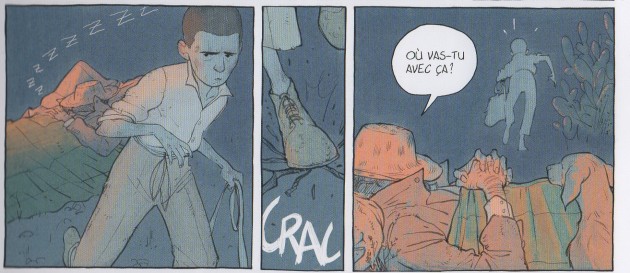 L’auteur Javi Rey (« Un maillot pour l’Algérie ») adapte ici le roman de Jesus Carrasco de la meilleure manière qui soit. A travers ce roman graphique on ressent une multitude de sensations. Par son découpage et son jeu de couleurs, l’auteur réussi à nous plonger dans cette ambiance étouffante que provoque la chaleur, le manque d’eau, de nourriture provoquant des hallucinations et la mise en place d’un instinct de survie.