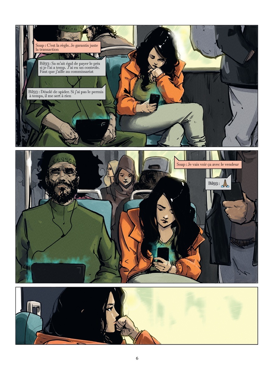 Dans le bus qui l’emmène au lycée, Roxanne, comme tout le monde, profite du trajet pour être sur son portable. Sur les réseaux, elle prend le pseudonyme de « Soap » et navigue sur le Dark Web, un réseau anonyme où les utilisateurs peuvent échapper à la surveillance gouvernementale, tout en accédant à des contenus et transactions illégaux. Elle y joue le rôle d’« intermédiaire » entre vendeurs et acheteurs. En lien avec des trafiquants, elle s’est spécialisée dans la livraison de faux papiers — tout ça pour gagner un peu d’argent. Ce monde virtuel, où les règles sont floues et les conséquences souvent invisibles, semble être son terrain de jeu idéal.