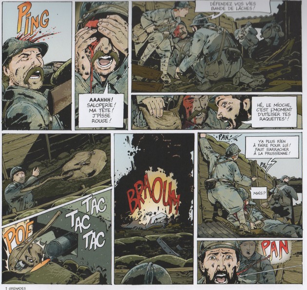 Ce second volet est donc consacré à la bravoure de ce jeune garçon. Mais au-delà de cette biographie améliorée, Pascal Bresson nous fait vivre l’enfer de Verdun en exposant bien toute l’horreur de cette période de la première guerre mondiale. Une multitude de personnages se succèdent aux côtés de Jean Corentin et il n’aurait pas le temps (et vous non plus) de s’attacher à ce dernier qu’il sera déjà en train de croupir au fond d’une tranchée. C’est ce type d’évènement qui va endurcir ce jeune soldat qui va évoluer au fil de l’album perdant à regret son âme d’enfant.
