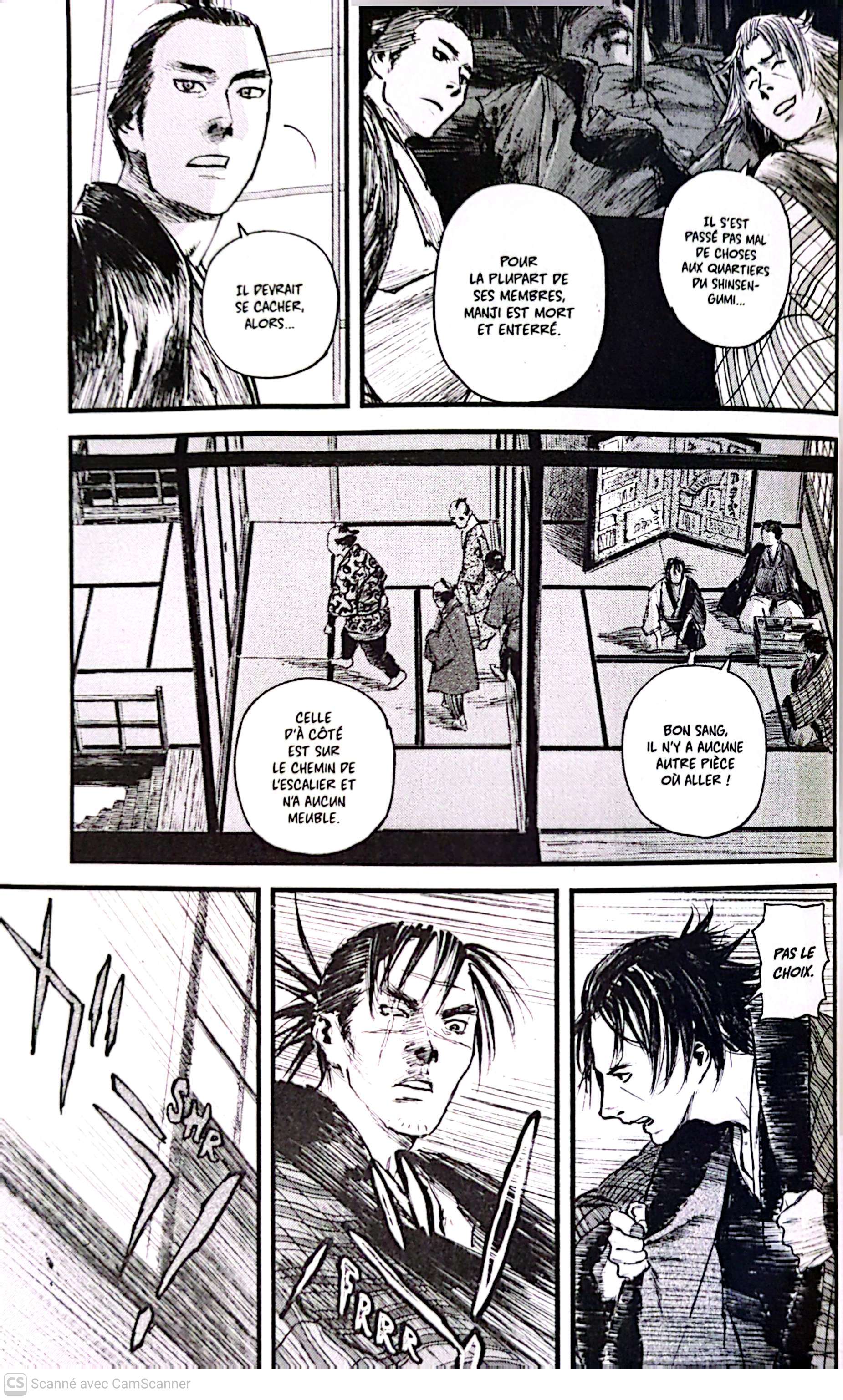 Dans ce volume, l'immortalité de Manji est mise à l'épreuve non plus seulement par des duels d'honneur, mais par la violence et l'ampleur d'une véritable guerre civile. Le récit le confronte aux figures et aux événements clés de l'époque. On le retrouve probablement pris au piège des conflits qui ravagent Kyoto, le théâtre de l'affrontement entre les redoutables membres du Shinsengumi et les patriotes qui rêvent d'une restauration impériale. Manji est contraint de choisir son camp, ou du moins de combattre pour sa propre survie dans un monde qui bascule.