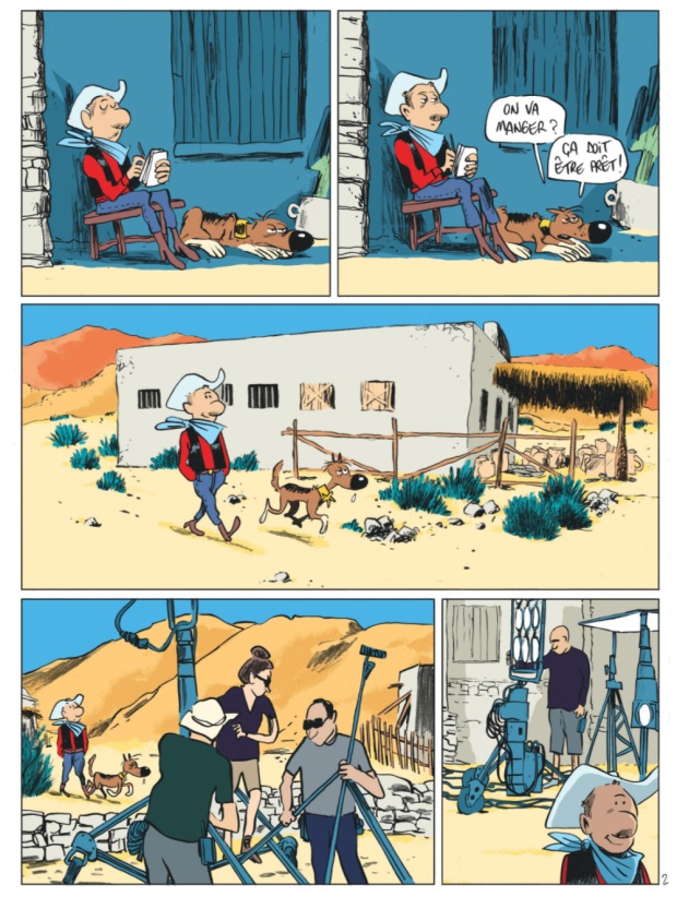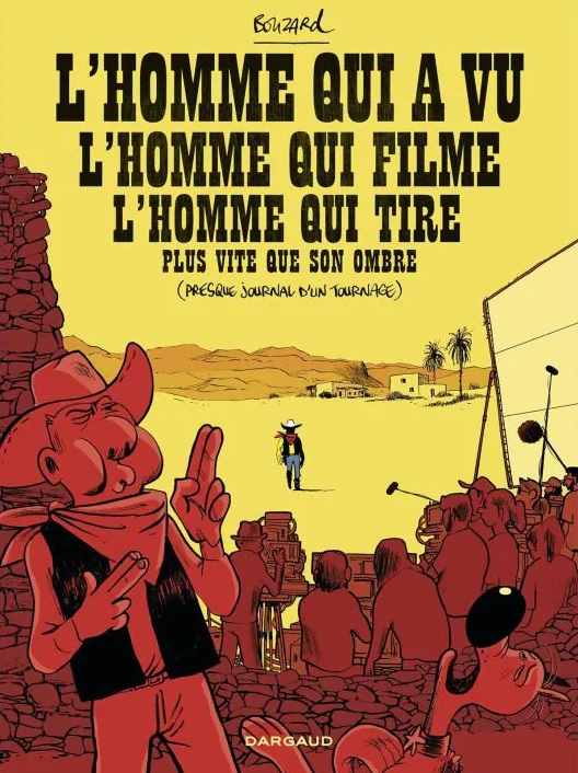 Une fois ce point posé, encore fallait-il trouver l’angle. Bouzard a alors eu l’excellente idée de se transformer en reporter et de réaliser un ouvrage sur le tournage de la série : un making-of. Très rapidement, l’auteur se prend au jeu et se transforme en véritable petit cow-boy, prêt à intervenir dans les scènes, à réaliser des cascades et à devenir une star.