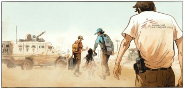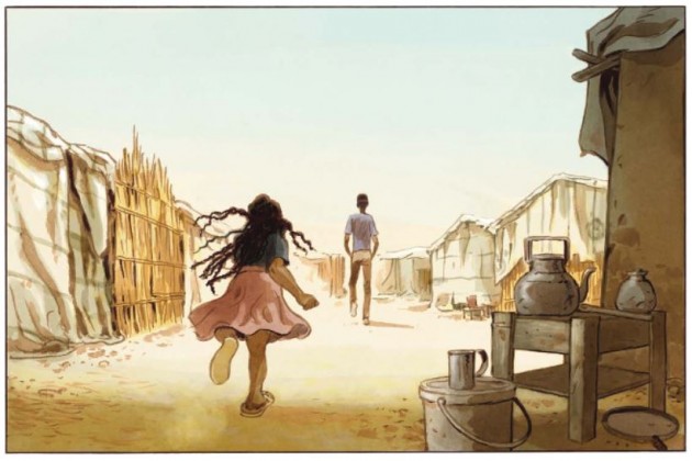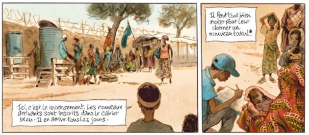 Au bout du fleuve, on retrouve avec plaisir Jean-Denis Pendanx pour une BD dont l’intrigue se déroule en Afrique. Cependant cette fois-ci, il s’est inspiré de sa propre expérience puisqu’il a réellement été dans ce camp de réfugiés afin d’organiser des ateliers de dessins à l’invitation d’associations humanitaires.