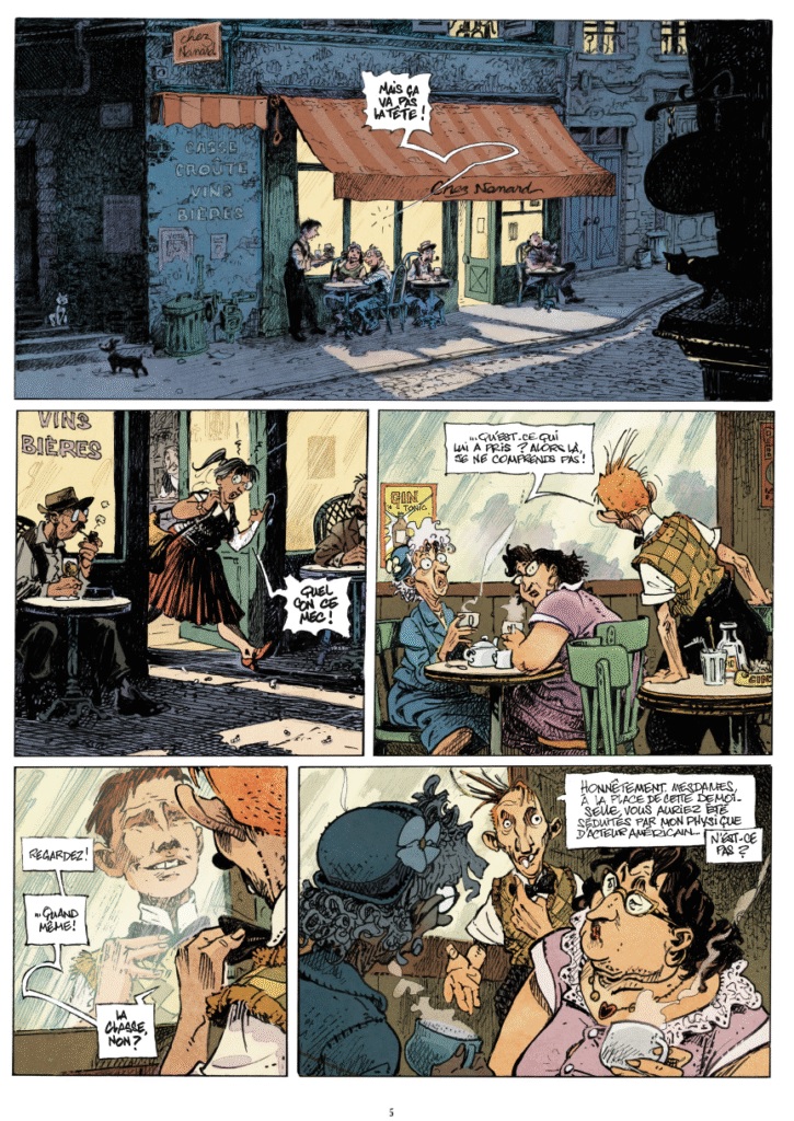 En effet, il faut être honnête : cette histoire n’a pas de sens et il ne faut pas chercher à en trouver un au fil des 160 pages de l’album, au terme desquelles on arrive essoufflé. Pourtant, le scénario ne manque pas de travail. Régis Loisel propose un découpage magistral où, en quelques cases et par un jeu d’ellipses, l’histoire se déroule avec fluidité. Quant à Djian, son écriture est prenante puisqu’il réussit à mener plusieurs histoires dans l’histoire, où chaque personnage vit sa propre aventure sans qu’aucune ne prenne le dessus sur les autres.