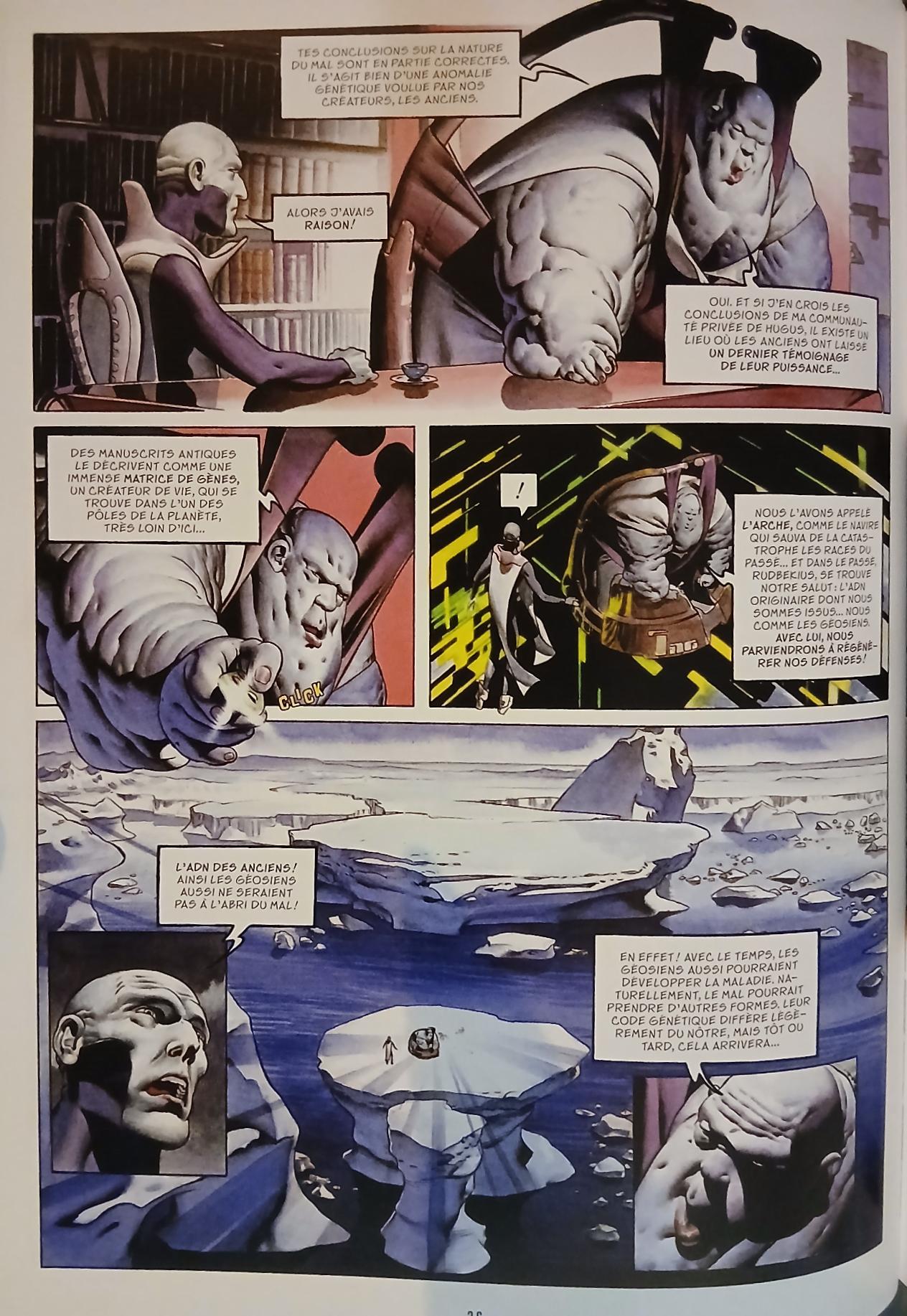 En parallèle, Rudbekius, scientifique méthodique et isolé, révèle une découverte inquiétante : une anomalie génétique ancestrale, héritée des origines mêmes des peuples, provoque une maladie incurable chez les Nautiles. Plus alarmant encore, rien n’exclut que cette dégénérescence touche aussi les Géosiens. Mais ses avertissements se heurtent au déni général.