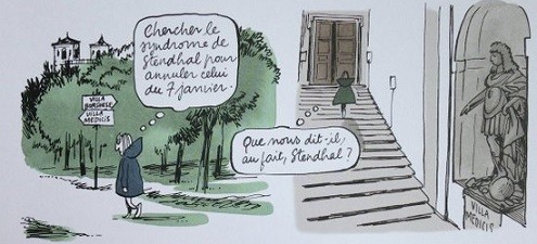 Pour faire face à l’horreur qu’elle a vécu, Catherine Meurisse décide de se confronter au syndrome de Stendhal appelé ainsi pour l’effet de sidération qu’aurait éprouvé l’écrivain face à trop de beauté. Pour se confronter à celui-ci, elle n’hésite pas à écumer les musées, les paysages splendides ou bien les représentations théâtrales.