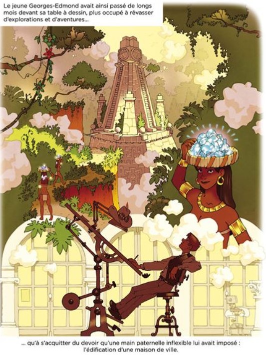 lecteurs vont adorer Georges Edmond D’Eyquerre et sa vie d'architecte aventurier car cet ouvrage est plus un album jeunesse qu’une véritable BD. Mais qui s’en plaindra ? Ce qui ne manquera pas non plus d'émouvoir, c'est le trait caricatural de l'artiste. La bonhomie des personnages les rend immédiatement sympathiques autant que le personnage principal. Cette maison nous est montrée sous tous les angles et surtout en opposition aux bâtiments construits à couteaux tirés qui l'entourent. C’est absolument magnifique d’originalité : cela fonctionne comme un retour vers l'enfance avec ses petites voitures, cette maison construit comme en Lego et ses occupants un brin frappadingues. Et puis, ses rêves sont remplis d’une poésie mélangeant avec brio Salvadore Dali et Fracis Ponge !