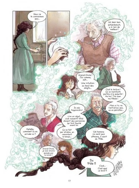 L’histoire débute sur l’arche d’Anima, l’une des vingt-et-une portions de monde issues de la mystérieuse « Déchirure ». Ophélie y mène une existence tranquille au sein d’un musée familial chargé de conserver les objets du passé. La jeune fille possède un don rare : elle peut lire la mémoire des objets qu’elle touche. Elle est aussi une « passe-miroir », capable de voyager à travers les glaces réfléchissantes. Mais son quotidien bascule le jour où elle doit annoncer à son oncle que les doyennes ont choisi de la marier avec Thorn, originaire du Pôle. Avant de partir, son oncle à l’accent Wallon très prononcé, lui propose de lui ouvrir les portes des archives et du savoir, car il ne faut pas qu’elle parte sans connaissance.