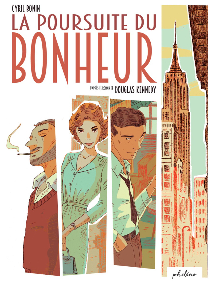 Outre les ouvrages où il exerce le métier de scénariste et de dessinateur, Cyril Bonin aime adapter des romans et cela nous permet de voir l’étendue de ses lectures et leur caractère éclectique. Après Les dames de Kimoto de l’autrice japonaise Sawako Ariyoshi, c’est au tour de Douglas Kennedy de voir son œuvre La poursuite du bonheur adaptée. Avec deux points communs. Le premier, c’est l’amour, et principalement les amours contrariés et compliqués. Le second est en lien avec le précédent : c’est l’époque. Si l’œuvre japonaise se termine dans les années 50, à l’époque de son autrice, celle-ci se joue totalement dans cette période de l’après-guerre où la chasse aux sorcières de McCarthy fait des ravages. Dès la première page, on plonge dans l’intrigue. Sara rencontre de Jack, ils passent la nuit ensemble et au matin, le jeune homme doit repartir en Europe pour l’armée. Contre toute attente, et contrairement à l’avis de son frère Éric, s’ensuit une longue attente et une vie sans réel bonheur avant, enfin, son retour. Mais là encore, rien n'est simple ; surtout dans cette époque troublée ! Tout doucement, on voit arriver l’interconnexion entre l’Histoire et l’histoire de Sara et on comprend pourquoi cette période a tellement bouleversé les États-Unis. Bien que le récit soit conséquent (145 pages), il y a très peu de temps mort. La narration faite par Sara est d’une grande superfluidité. Avec son caractère bien trempé, elle nous expose sans concession les États-Unis et la vie d'une jeune femme en quête de bonheur et d’indépendance. Le point fort de ce récit, c’est d’initier les rebondissements lorsqu’on s’y attend le moins et, pour une comédie romantique, c’est très agréable. Notons que le trait tout en finesse et en délicatesse de Cyril Bonin renforce la touche charme de cette histoire. Sara est tout simplement magnifique, qu’elle soit rayonnante ou abattue. Jack est énigmatique du début à la fin et Éric est réellement investi. Les décors, qu’ils soient new-yorkais ou du Maine, à l’intérieur comme à l’extérieur, apportent une touche de poésie qui sied à merveille à cette intrigue. Même lorsque la romance prend un petit tour policier, les personnages deviennent plus troubles mais tous restent toujours très attachants. Fidèle à ses habitudes, la colorisation s’effectue dans des teintes pastel très tranchées qui apportent une touche presque irrationnelle à cette romance.