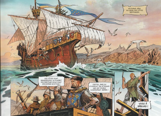 bonnement superbes, qu’il s’agisse des châteaux royaux, de l’obscure forteresse de l’ile d’Yeu ou des campements en forêt. Les nombreuses scènes de guérilla ne souffrent d’aucun défaut en mixant violence et dynamisme. Reste à évoquer les batailles navales qui font largement le job et le poids face à d’autres références de la discipline. La colorisation vient quant à elle rehausser la beauté du trait et compléter à merveille de narration.