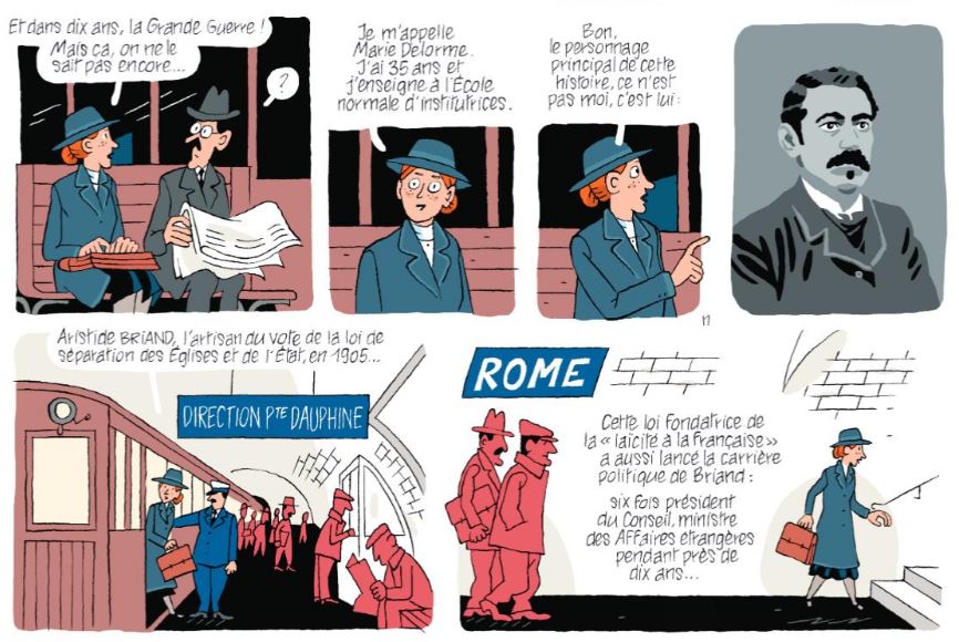 Pour rendre cette matière historique plus vivante, les auteurs font intervenir une narratrice fictive, Marie Delorme, enseignante normalienne, qui accompagne Briand dans sa quête d’un compromis. À travers son regard, le lecteur découvre non seulement les affrontements parlementaires, mais aussi les enjeux humains, politiques et philosophiques qui entourent cette loi. L’album ne se contente pas de reconstituer un épisode du passé : il en souligne la résonance contemporaine, rappelant combien la question de la laïcité reste, plus d’un siècle plus tard, un sujet brûlant.