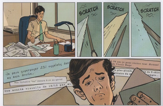 Se mettre à la lecture d’un album de Benacquista promet toujours de belles surprises. Je pense notamment à « L’outremangeur » ou « Dieu n’a pas réponse à tout ». Cette fois-ci, ce polar à la sauce Benacquista plante le décor là où on ne l’attend pas à savoir au sein même des éditions du guide mondial des records. Et pour bien être dans l’ambiance, le lecteur va suivre une journée type avec l’anti héros Paul Baron, vérificateur au guide, et pourra constater par lui-même l’ennui de cette activité mais qui sera pour le lecteur une bonne partie de sourire jusqu’à la réception de cette frémissante lettre.