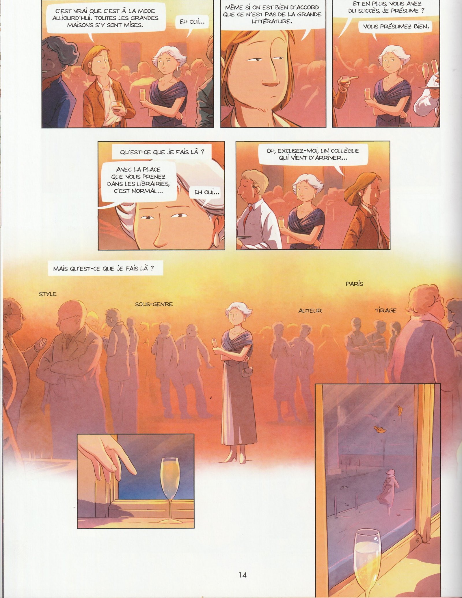 Après avoir véritablement adoré les premiers Le jour où, j’ai fini par me lasser et j’ai abandonné la série. Et puis voilà qu’on me demande de donner mon avis sur le dernier album de la série, le 9e opus. Premier constat, je suis en territoire connu. Après une petite balade pyrénéenne avec son acolyte Philippe Charlot et leurs frères Flanchin, Marko revient en grande forme. Son trait tout en rondeur et en douceur fait toujours merveille dans cette feel-good BD. Les personnages, attachants, sont identifiables au premier coup d’œil malgré les albums non lus. Les décors font la part belle aux intérieurs cosys à la nature. Balades en forêt et autres repos au pied d’un arbre en automne sont des tranquillisants absolus en cette veille de rentrée. Et puis, il y a ce qui est raconté et les récits emboîtés laissent ici davantage la place aux souvenirs, aux pensées intérieures de Chantal. Pour cela, nulle prise de tête, juste une absence de cadre. Le dilemme vient alors de quelques planches dont on ne sait plus ce qu’elles sont. Pourtant, si confusion il y a, elle est totalement volontaire puisque Chantal doit se reconnecter avec son Être pour mettre en sourdine son Faire et son Avoir. Pour le reste, le dessin fait la part belle aux dialogues grâce à des vignettes relativement petites qui s’enchaînent les unes aux autres selon des droites pas toujours horizontales mais toujours aisément lisibles. Ce sont ces rencontres, réelles ou fictives, qui permettent de diagnostiquer le malaise de Chantal. Il faut dire que les soirées littéraires parisiennes sont des concentrés d’égo-narcissisme. Peut-être une mise en abyme pour les artistes ? D’autres, plus nombreuses, sont de véritables bouées de sauvetage auxquels Chantal va s’attacher pour enfin retrouver du plaisir à être et à faire ce qu’elle aime et non ce qu’on attend d’elle.