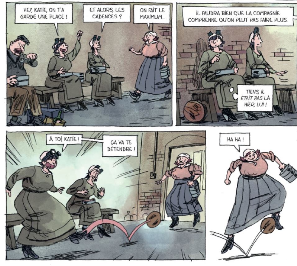 Au dessin, Seb Piquet adopte un style dynamique qui sert bien le récit. Les personnages sont expressifs et l’on s’attache facilement à ces ouvrières devenues sportives. Les scènes de match sont mêmes plutôt plaisantes malgré la difficulté de l’exercice ! Les tons légèrement sépia rappellent les photographies d’époque et contribuent à installer une ambiance historique crédible. J’ai également apprécié l’alternance entre les scènes de travail à l’usine, les moments de vie plus intimes et les matchs spectaculaires !